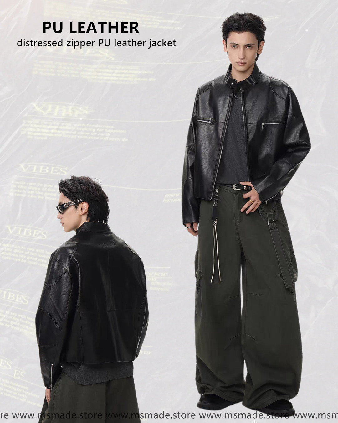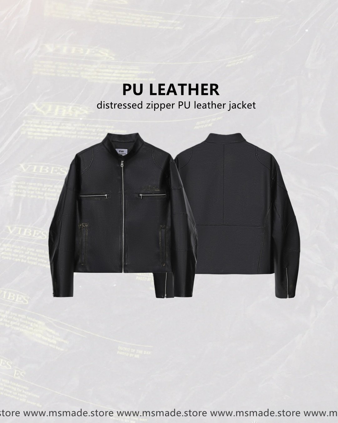 🔸M334擦色拉鏈PU皮外套 –M 衣長 60 cm 胸圍 120 cm 袖長 57cm –L 衣長 62 cm 胸圍 124 cm 袖長 59cm –XL衣長 64 cm 胸圍 128 cm 袖長 60cm –2XL衣長66 cm 胸圍 132 cm 袖長 63cm –color: 黑色 –oversize cutting –unisex By M’SMADE (1)(FB)(IG)msmade.hk (2)Whatsapp +852 61592995 (3)如有任何查詢歡迎DM我們 https://www.msmade.store/ *凡購物滿以上金額免運費* 香港消費滿HKD 500 澳門消費滿HKD 800 台灣消費滿 NT 5000