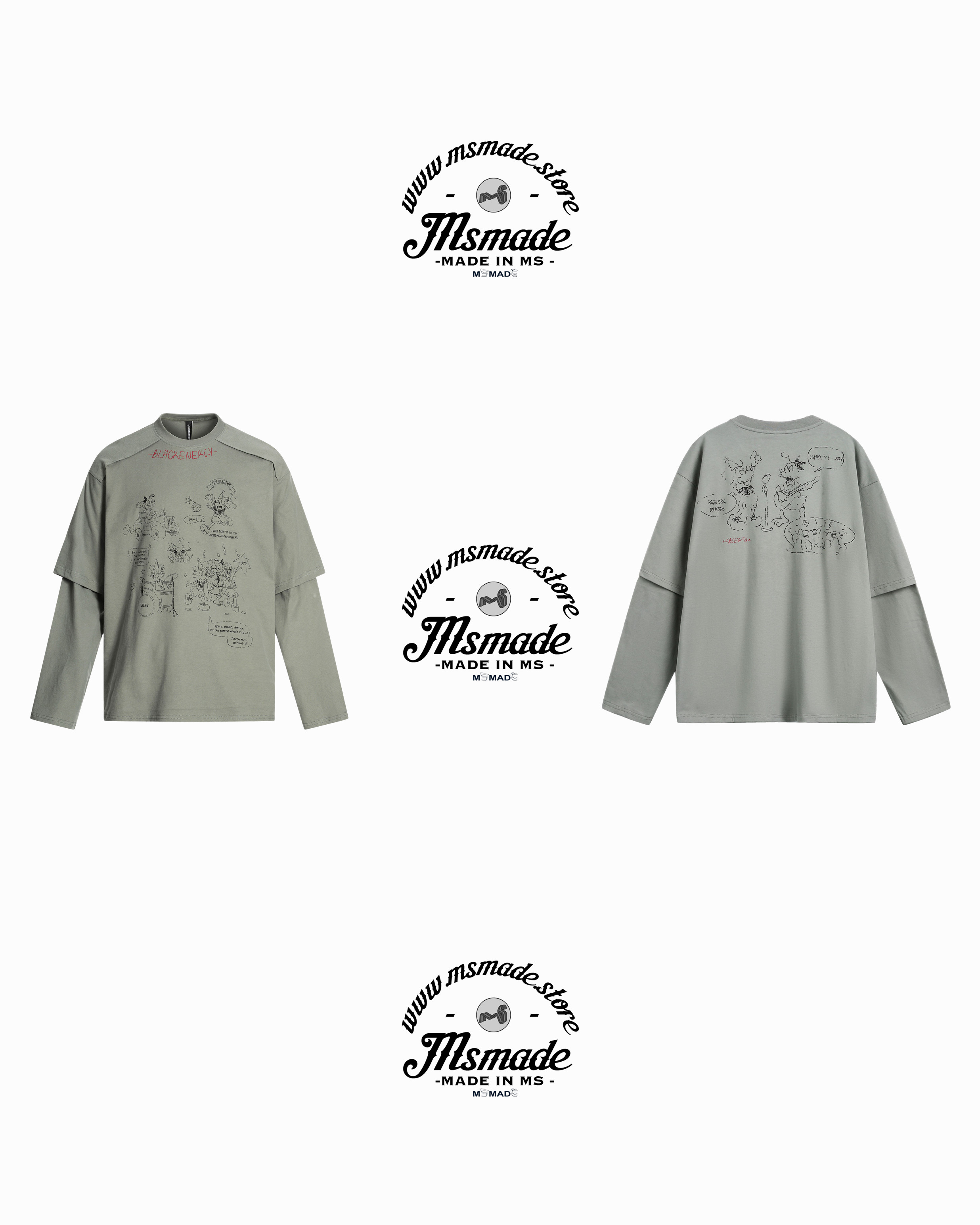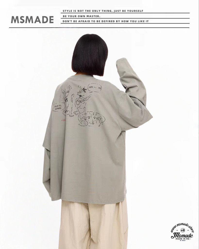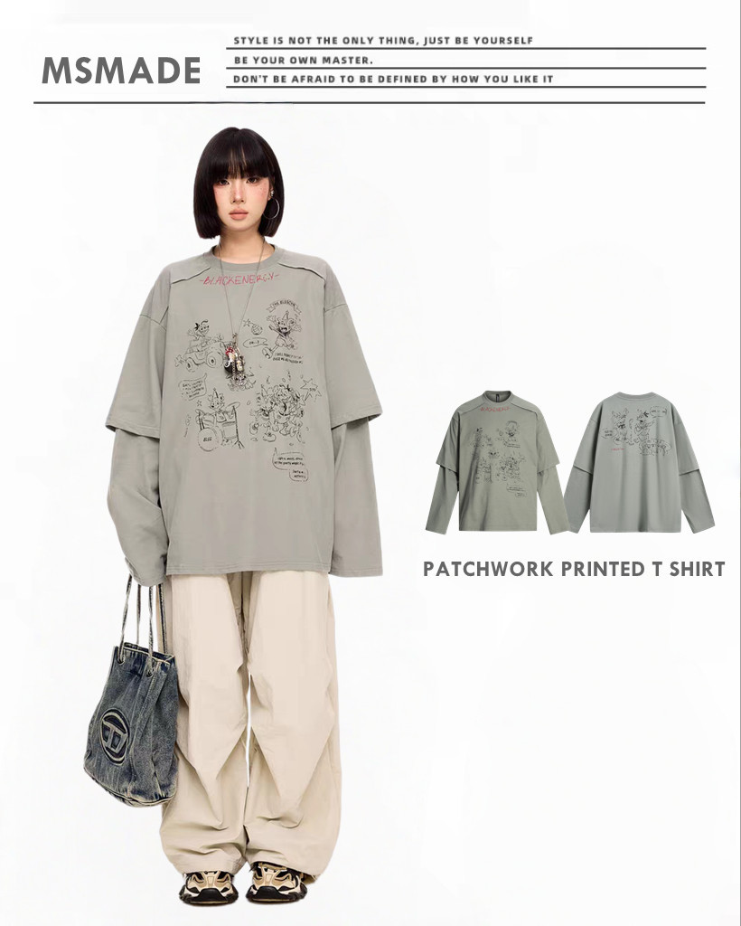 🔸M103 拼接假兩件印花長袖T恤 –S 衣長 66 cm 胸圍 124 cm 袖長 56 cm –M 衣長 68 cm 胸圍 128 cm 袖長 57.5 cm –L 衣長 70 cm 胸圍 132 cm 袖長 59 cm –XL 衣長 72 cm 胸圍 136 cm 袖長 60.5 cm –color: 淺花灰色 灰綠色 –oversize cutting –unisex By M’SMADE (1)(FB)(IG)msmade.hk (2)Whatsapp +852 61592995 (3)如有任何查詢歡迎DM我們 https://www.msmade.store/ *凡購物滿以上金額免運費* 香港消費滿HKD 500 澳門消費滿HKD 800 台灣消費滿 NT 5000