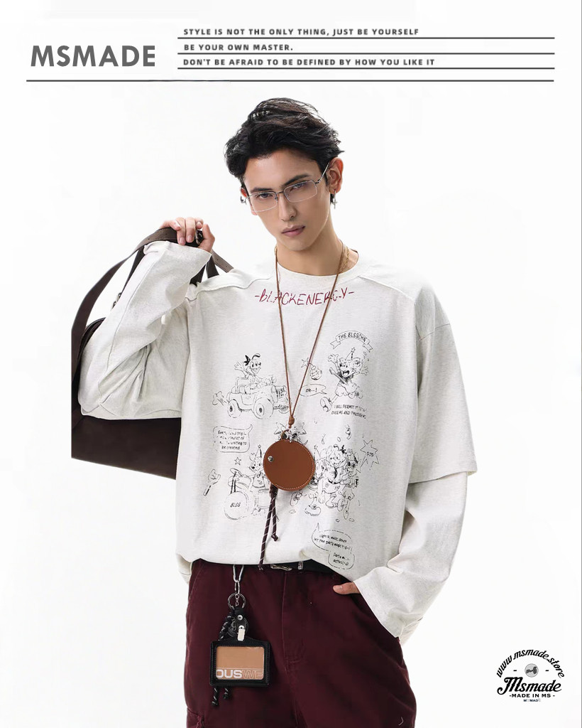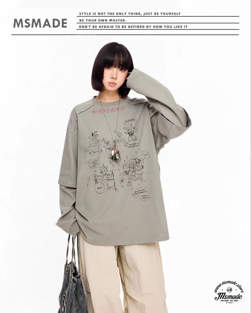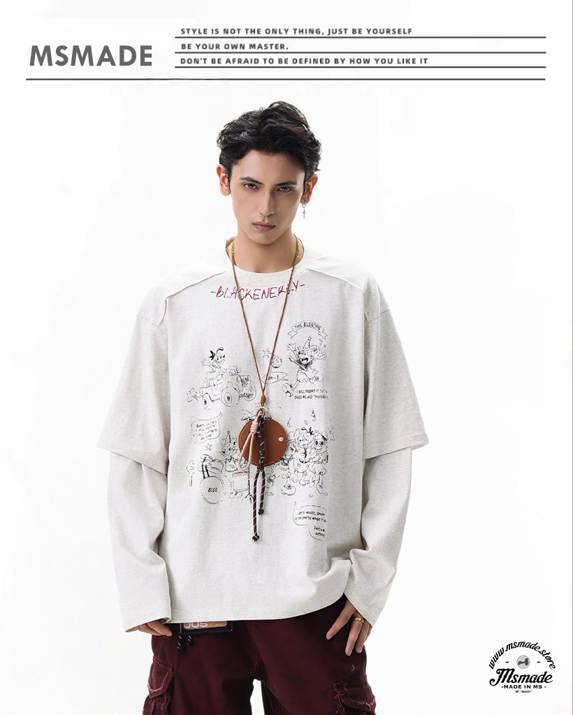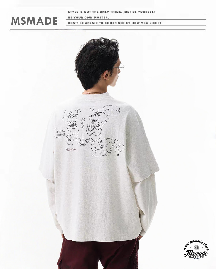 🔸M103 拼接假兩件印花長袖T恤 –S 衣長 66 cm 胸圍 124 cm 袖長 56 cm –M 衣長 68 cm 胸圍 128 cm 袖長 57.5 cm –L 衣長 70 cm 胸圍 132 cm 袖長 59 cm –XL 衣長 72 cm 胸圍 136 cm 袖長 60.5 cm –color: 淺花灰色 灰綠色 –oversize cutting –unisex By M’SMADE (1)(FB)(IG)msmade.hk (2)Whatsapp +852 61592995 (3)如有任何查詢歡迎DM我們 https://www.msmade.store/ *凡購物滿以上金額免運費* 香港消費滿HKD 500 澳門消費滿HKD 800 台灣消費滿 NT 5000