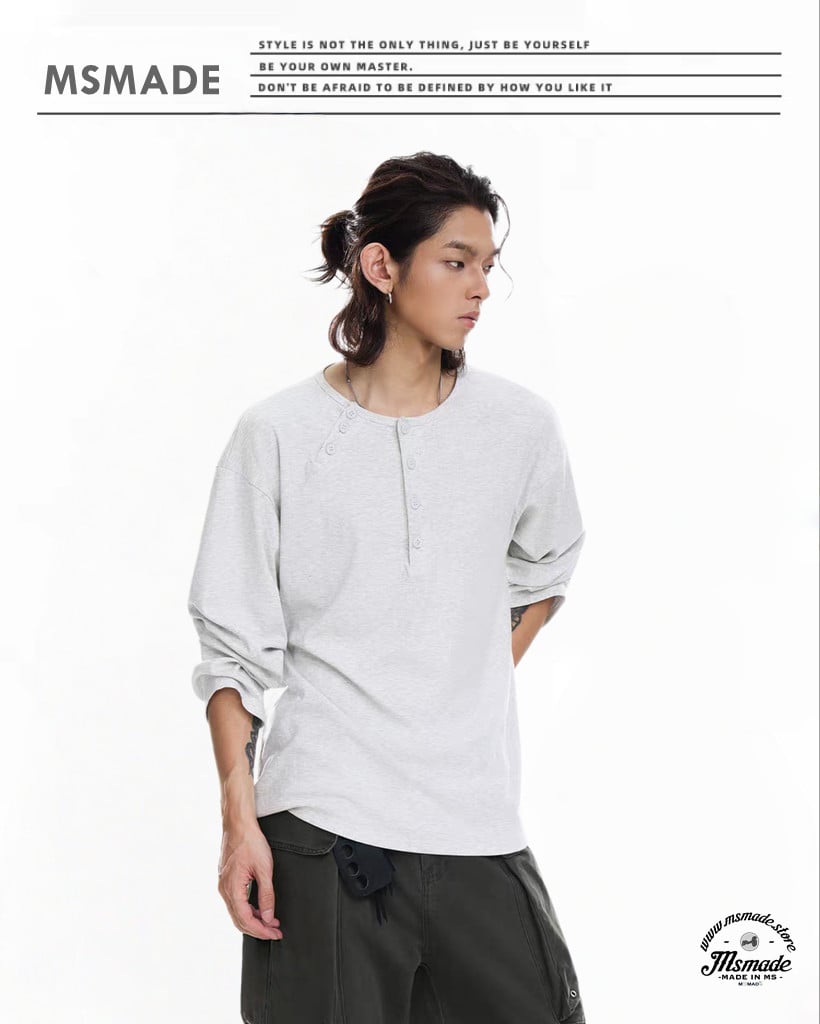 🔸M1378 半胸開鈕長袖T恤 –M 衣長 65 cm 胸圍 112 cm 袖長 57cm –L 衣長 67 cm 胸圍 116 cm 袖長 58cm –XL 衣長69 cm 胸圍 120 cm袖長 59cm –2XL衣長71 cm 胸圍124 cm 袖長 60cm –color: 深灰色 淺灰色 –oversize cutting –unisex By M’SMADE (1)(FB)(IG)msmade.hk (2)Whatsapp +852 61592995 (3)如有任何查詢歡迎DM我們 https://www.msmade.store/ *凡購物滿以上金額免運費* 香港消費滿HKD 500 澳門消費滿HKD 800 台灣消費滿 NT 5000
