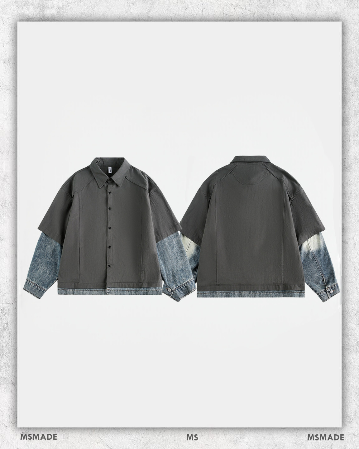 🔸M246 拼接牛仔假兩件長袖恤衫 –M 衣長 67 cm 胸圍 120 cm 袖長 55.5cm –L 衣長 69 cm 胸圍 124 cm 袖長 57cm –XL 衣長71 cm 胸圍 128 cm 袖長 58.5cm –2XL衣長73 cm胸圍132 cm 袖長 60cm –color: 灰色 –oversize cutting –unisex By M’SMADE (1)(FB)(IG)msmade.hk (2)Whatsapp +852 61592995 (3)如有任何查詢歡迎DM我們 https://www.msmade.store/ *凡購物滿以上金額免運費* 香港消費滿HKD 500 澳門消費滿HKD 800 台灣消費滿 NT 5000