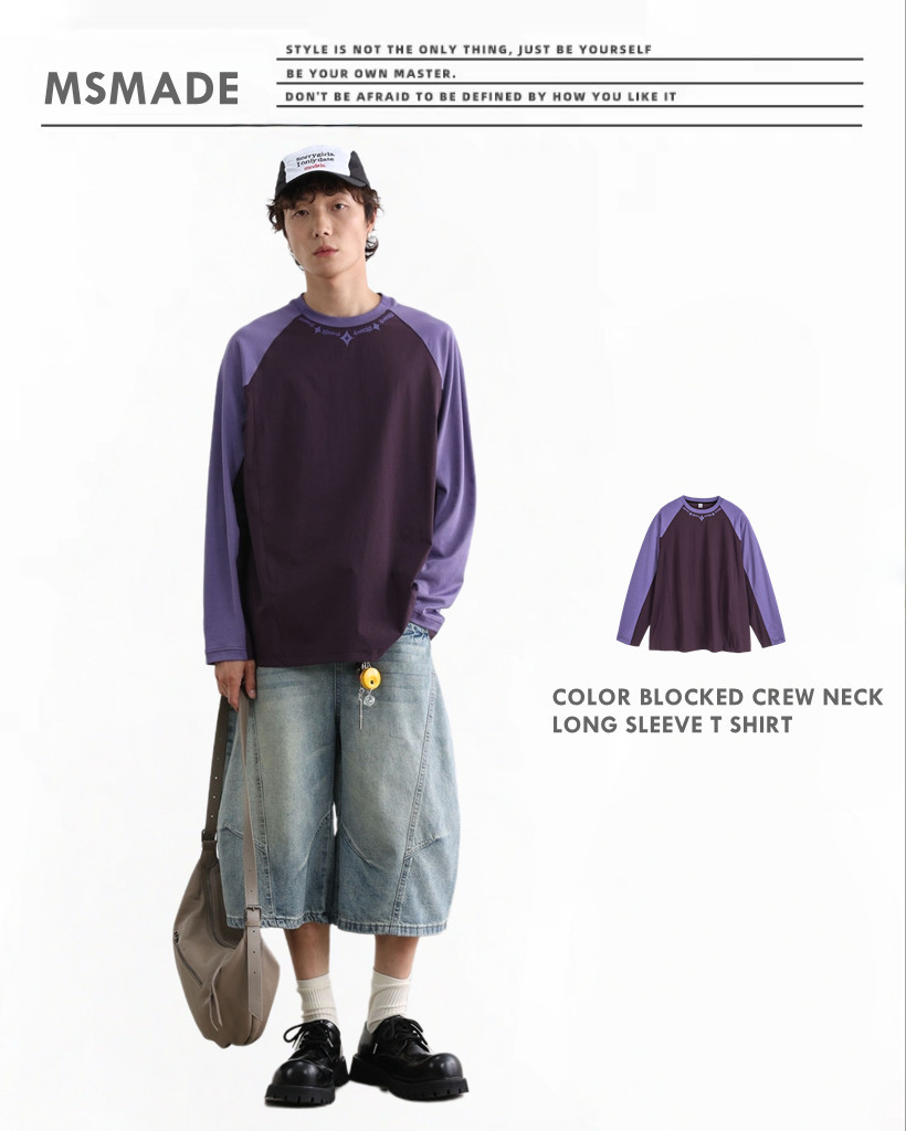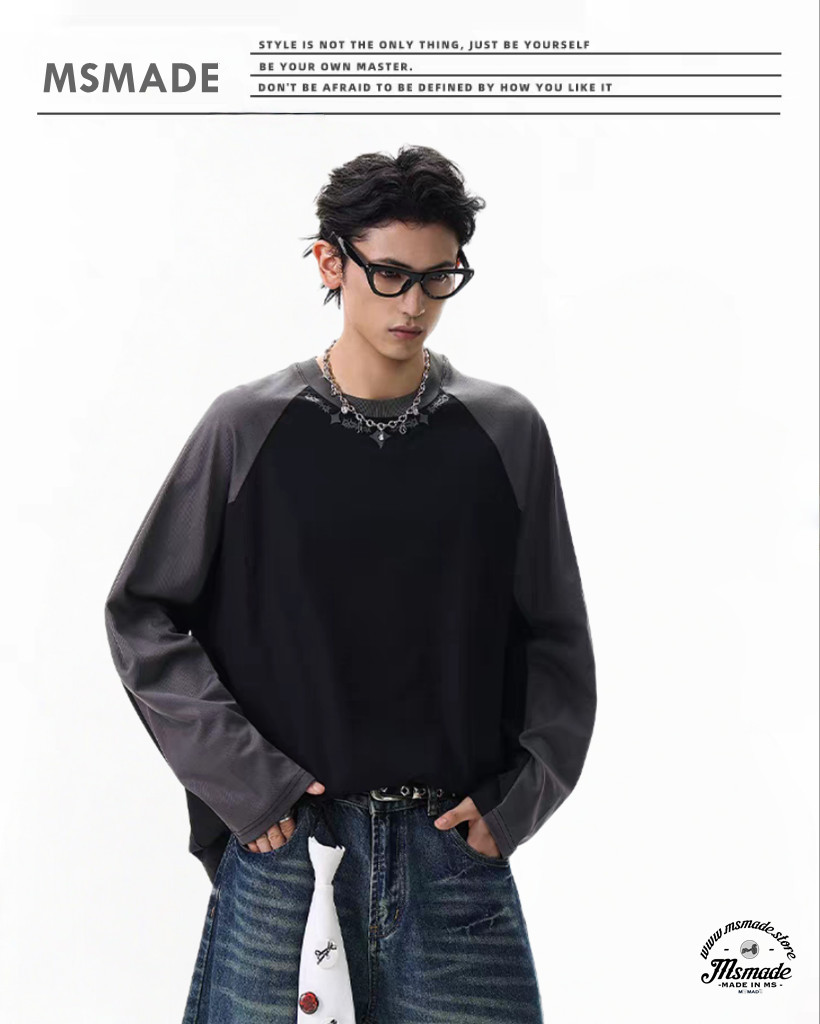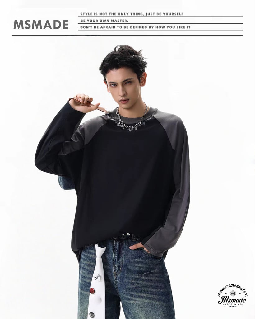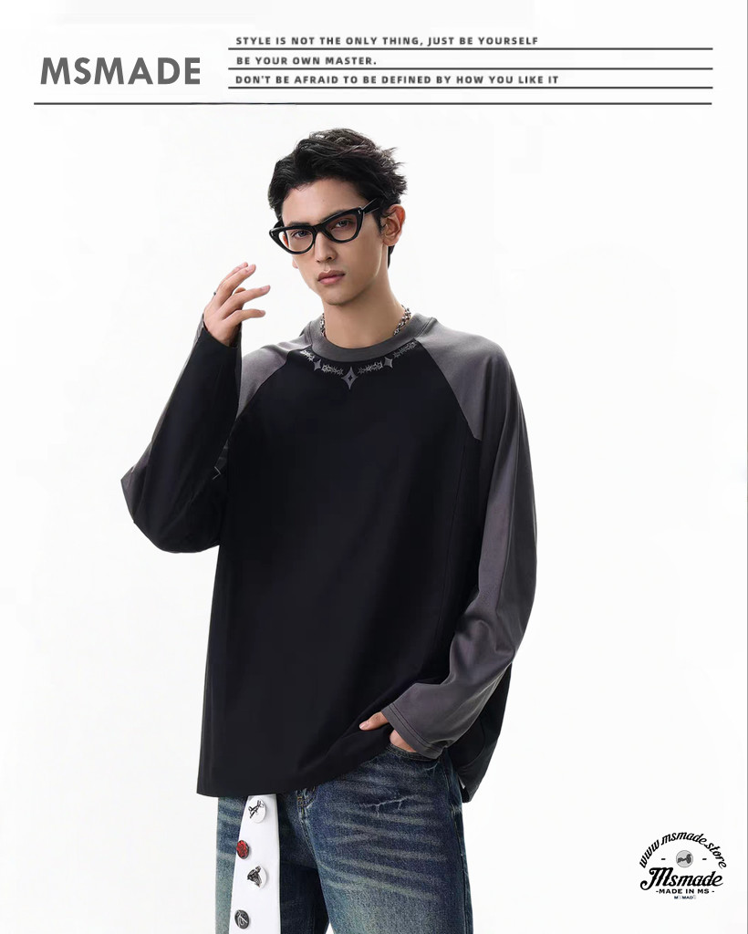 M496 牛角袖圓領長袖T恤
