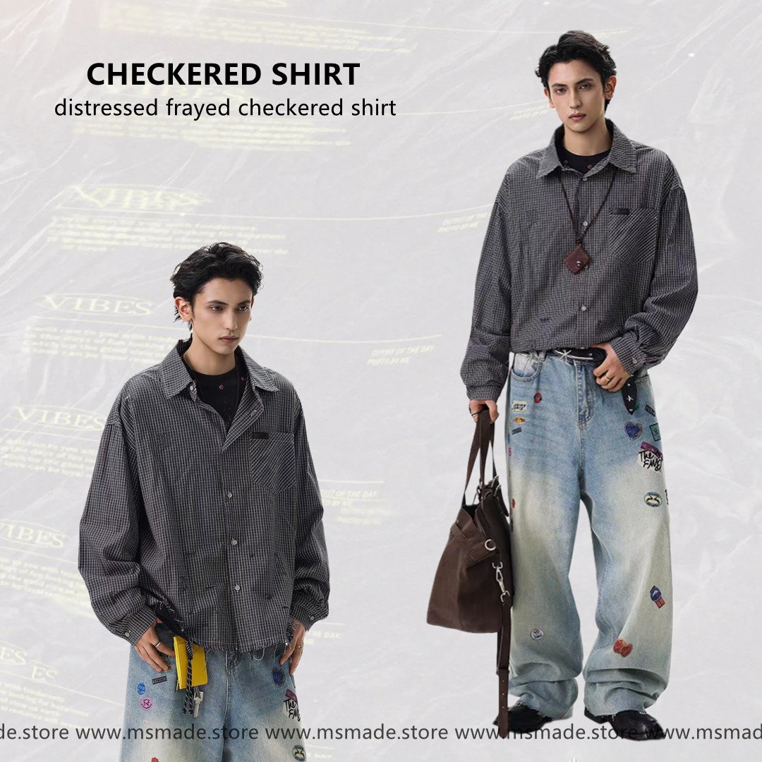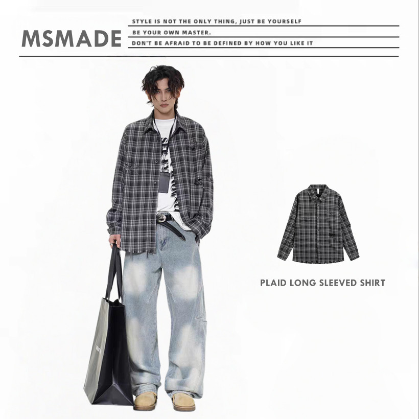 M748 復古破洞格仔長袖恤衫