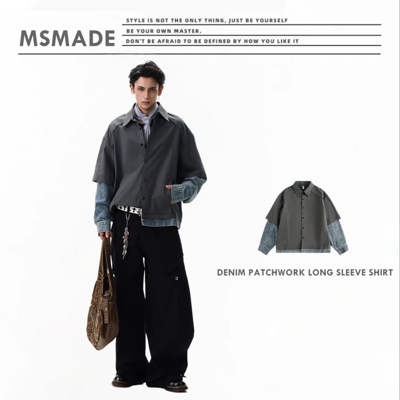 M246 拼接牛仔假兩件長袖恤衫